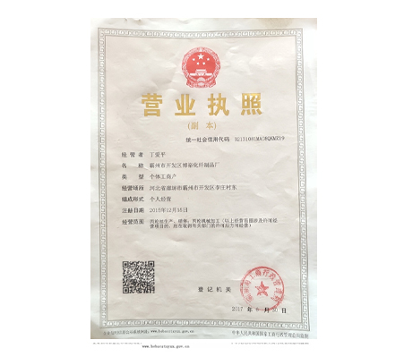 Strong technical force and advanced production technology 霸州市開發(fā)區(qū)博裕化纖制品廠是一家生產(chǎn)丙綸長絲的大型企業(yè),擁有先進的紡絲生產(chǎn)線,現(xiàn)有技工8名,職工200多名,形成華北地區(qū)產(chǎn)量較大、品種較全、技術(shù)力量雄厚、生產(chǎn)工藝先進,以生產(chǎn)300D—1800D各種中、高、強丙綸長絲為主導產(chǎn)品